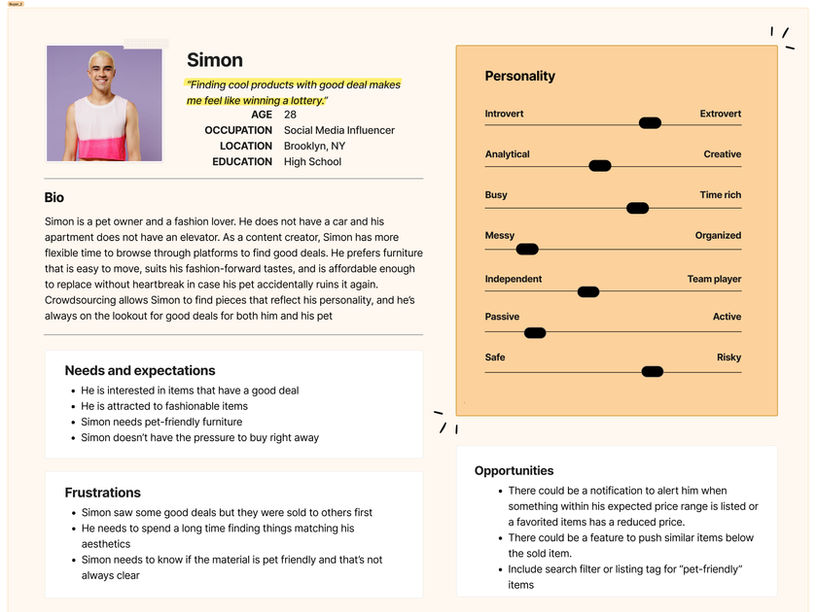Final Design Frame: Design an app for crowdsourcing made or resale furniture needs of residents.