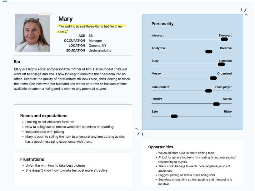 With our given prompt, as group, we decided to design a brand new app for buying and selling resale furniture within New York City. This decision was made based on our current location within New York City and on primary and secondary research conducted on currently existing resale furniture sites and unique consumer regulations within this state.